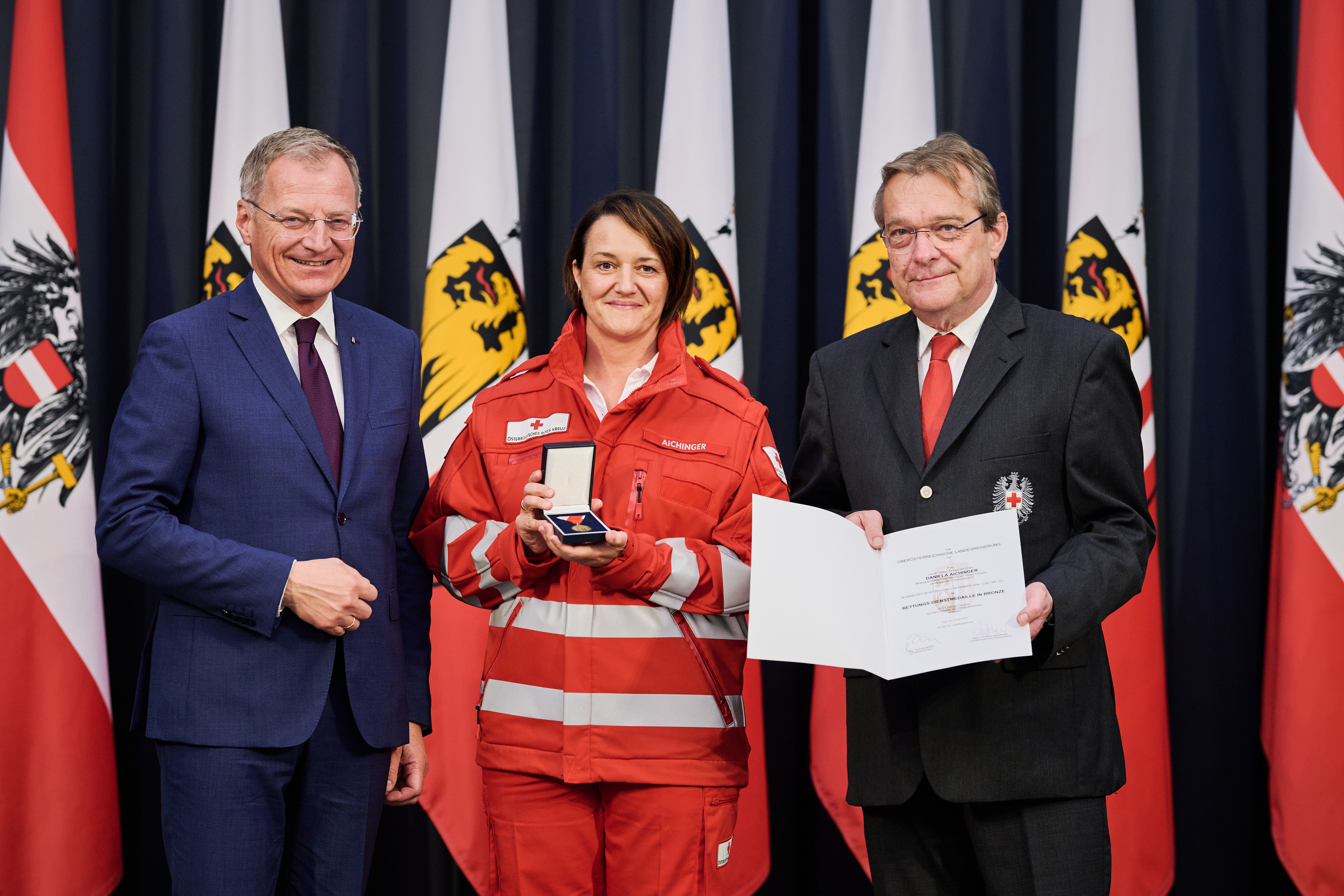 Beschreibung: Landeshauptmann Mag. Thomas Stelzer lädt zur Verleihung der Rettungsdienstmedaillen in den Steinernen Saal des Linzer Landhauses zur einer Feierstunde.